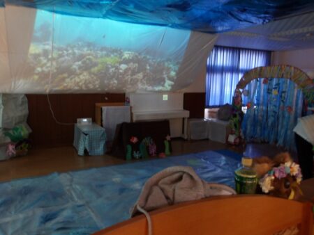 大スクリーンには、たくさんの海の生き物が泳いでいました。