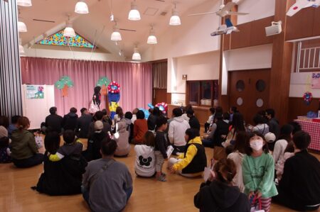 『ミャクミャクのある日のおはなし』を題材にして、先生達がおもしろくて・楽しい劇をしていました。