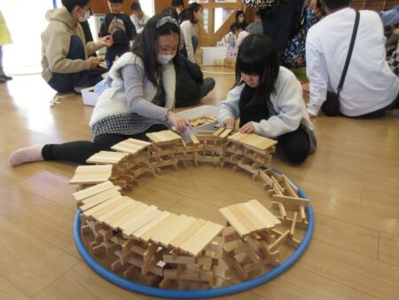 家族みんなで協力をして、大屋根リングを作っていました!